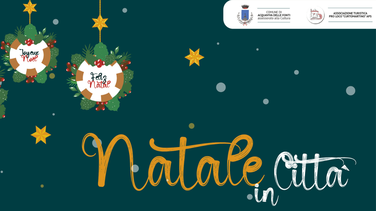 Il Comune di Acquaviva delle Fonti presenta “Natale in Città”, un ricco programma di eventi (consultabile sul sito dell’ente) che animerà la città a partire dal 7 dicembre, trasformando vie, piazze e spazi culturali in un grande palcoscenico di musica, tradizioni e convivialità.