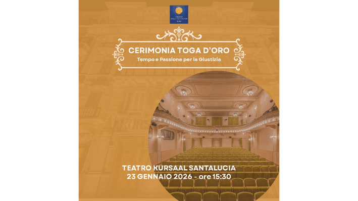 Si rinnova uno degli appuntamenti più solenni e identitari della vita forense barese. Venerdì 23 gennaio 2026, alle ore 15.30 al Teatro Kursaal Santalucia di Bari, si terrà la Cerimonia della Toga d’Oro, promossa dall’Ordine degli Avvocati di Bari.